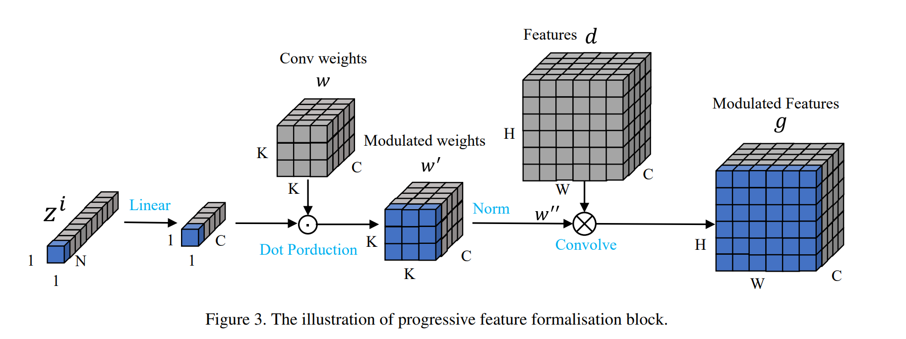 Another part is a U-net-like network. The encoder layer extracts content embedding from gray input image(only contains L-channel information), and the decoder layer reconstructs the image with color embedding through PFFB(Progressive Feature Formalization Block) and outputs the ab_channel information.