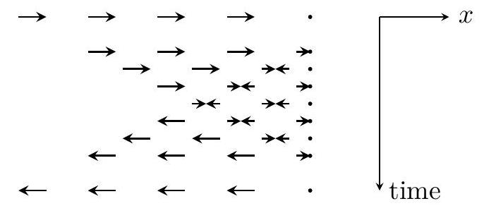 This shows that the upper bound obtained above can be attained. If the number of collisions is finite, the largest possible number of collisions is therefore indeed $n(n-1) / 2$.