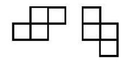 Aus zwei 2x1-Dominosteinen kann man ein Tetromino konstruieren, indem man die beiden Dominosteine längs ihrer längeren Seiten so aneinanderlegt, dass der Mittelpunkt der längeren Seite des einen Dominosteins ein Eckpunkt des anderen Dominosteins ist. Dabei ergeben sich zwei hinsichtlich ihrer Orientierung verschiedene Typen von Tetrominos, die wir als $S$ - bzw. $Z$-Tetromino bezeichnen wollen.