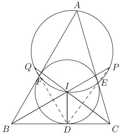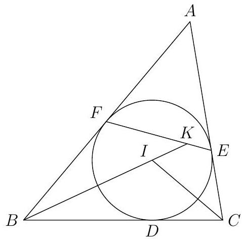 \angle K I C=\angle I B C+\angle I C B=\frac{1}{2} \angle A B C+\frac{1}{2} \angle A C B=90^{\circ}-\frac{1}{2} \angle B A C=\angle A E F .