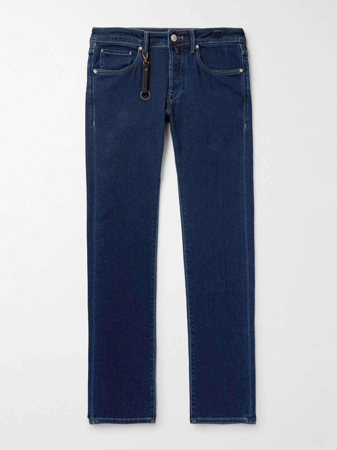 Leather-Trimmed Straight-Leg Jeans