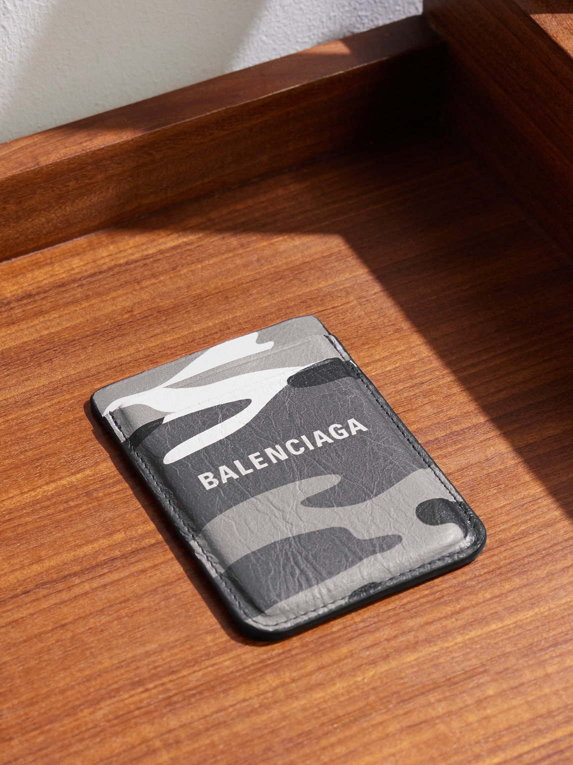 Camouflage-Print Full-Grain Leather Magnetic Cardholder
