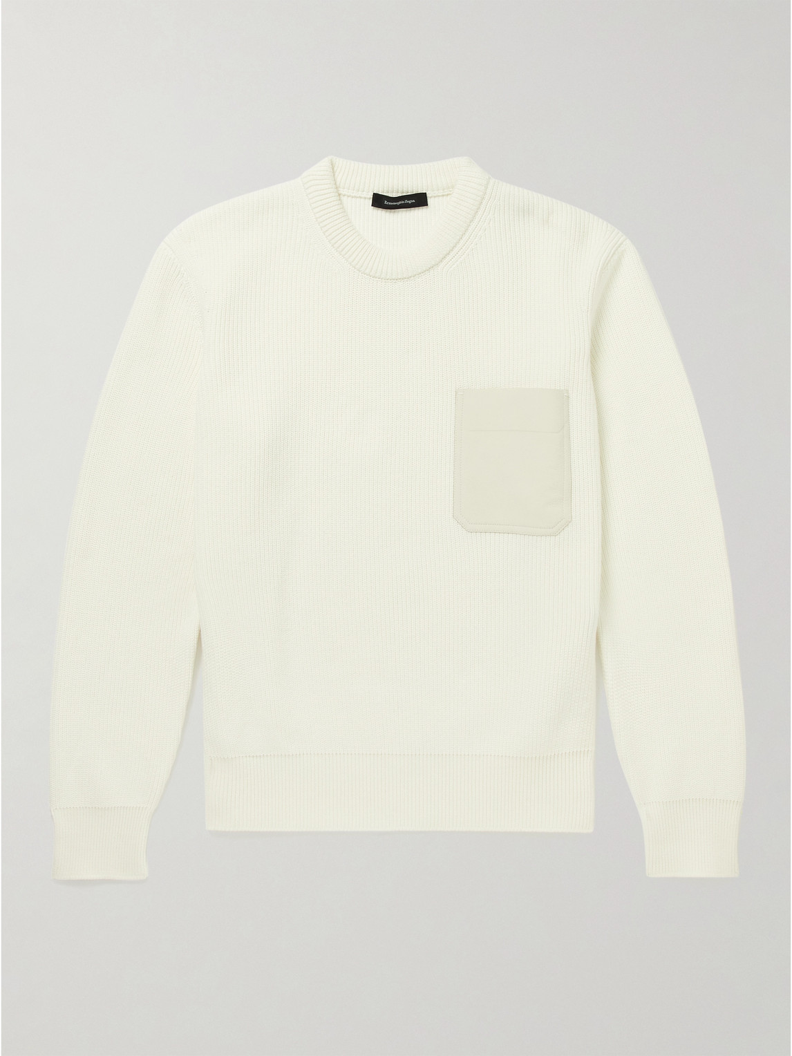 Leather-Trimmed Ribbed Cotton and Silk-Blend Sweatshirt