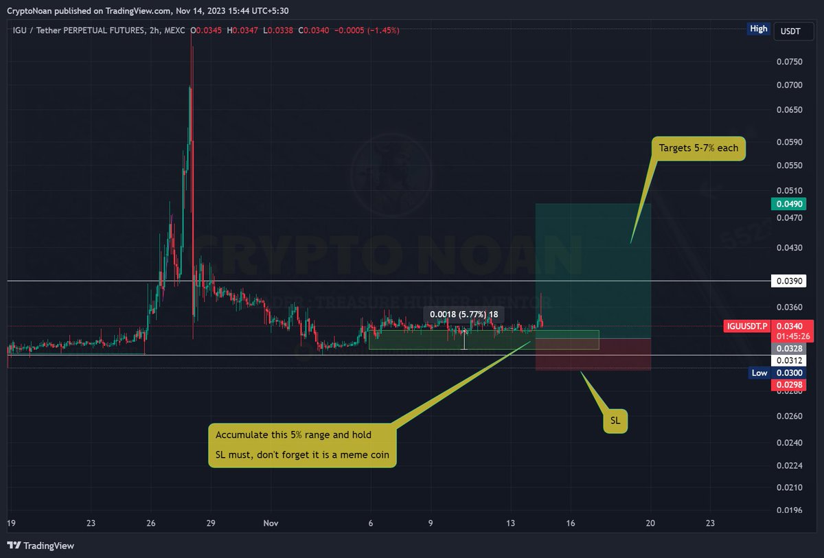 [{'ticker': '$IGU', 'exchanges': ['kucoin'], 'price': '0.057258', 'percentage_change': '+9.8%', '4h_ta_result': 'STRONG_BUY', '4h_ta_details': '17 buy, 8 hold, 1 sell', '1d_ta_result': 'STRONG_BUY', '1d_ta_details': '18 buy, 7 hold, 1 sell'}]