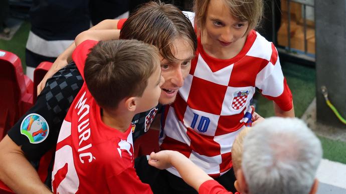莫德里奇和自己最后一届欧洲杯挥手告别。出生于上世纪80年代中期的克罗地亚球员,大多在儿时经历过战争,2018年俄罗斯世界杯,他们也向世界展现着自己的意志。三年后的欧洲杯,这支球队没了曼朱基奇,没了拉基蒂奇,但他们还有核心,还有莫德里奇,还有坚韧的本性。从1比3落后到伤停补时3比3绝平,再到加时赛失利,克罗地亚队已经付出了自己的全部。在莫德里奇下场的一刻,他也足够骄傲地和自己的孩子们拥抱。小组赛一脚技惊四座的世界波,对阵西班牙的一次间接助攻,所有四场比赛出色的中场梳理……这一切,都是莫德里奇的“魔力”。莫德里奇被换下。从最年轻纪录,到最年长纪录作为球队的中场核心,莫德里奇总能挺身而出。对阵西班牙,当克罗地亚1比3落后时,正是他在小禁区内送出横传制造了混战,间接助攻奥尔西奇进球扳回一分。而在小组赛时,他还有更加精彩的表现。小组赛最后一轮对阵苏格兰,莫德里奇在禁区外打出一脚技惊四座的外脚背世界波,帮助克罗地亚取得比分领先并最终赢下了比赛。那一脚射门,让莫德里奇成为了克罗地亚队史在欧洲杯最年长的进球者(35岁286天)。或许是冥冥中的巧合,克罗地亚在欧洲杯最年轻的进球者纪录,也同样是由莫德里奇创造——2008年欧洲杯,22岁零273天的莫德里奇在对阵奥地利的比赛中完成进球。从最年轻进球球员纪录,到如今的最年长纪录,跨越13年时间,莫德里奇已经从新锐小将变成了球队的老大哥,但不变的是他为球队做出贡献的决心。欧洲杯开赛前他曾说:“我不需要强调为国出战是多大的荣誉,为克罗地亚踢球是我的责任。”莫德里奇和孩子们合影。拿出自己的全部莫德里奇或许算得上足坛“大器晚成”的范例。2018年他率领格子军团闯入世界杯决赛获得亚军,随后打破梅罗垄断摘得了当年的金球奖,彼时的他已经33岁。三年之后,他已经是36岁高龄,但对于自己的要求,莫德里奇似乎依然没有半点放松的意思。国家队队友布季米尔就曾这样描述过他眼中的克罗地亚队长:“我们队内训练经常做老队员和小队员的对抗,他总是想赢过年轻人,对待训练非常严肃,就好像那是真正的比赛一样。”“他就连训练之前的准备工作也非常细致——去健身房、休息、照顾好所有细节、热身……他可不是随便一踢就踢成了世界球星,绝对不是这样。”除了自己以身作则做好榜样之外,莫德里奇也并没忘记自己作为队中老大哥的角色,就像布季米尔所说,所有队员都得到过他场下的帮助和支持:“他总是说,年轻球员要更好地享受比赛,所以老队员就应该贡献更多。”本届欧洲杯,已是高龄球员的莫德里奇四场比赛场场打满,包括最后一场对西班牙的加时赛大战,总计贡献了1粒进球和1次助攻。此外,他还贡献了7次关键传球4次过人,防守端他同样兢兢业业,4次拦截外加4次抢断,证明了这位老将的拼劲依旧不减。没有秘诀的球星曾有相熟的记者问莫德里奇,他成功的秘诀是什么,结果得到的回答是——并不存在那样的东西。“我没有什么秘诀,这只是来自我对于工作的坚持,我为此做出的牺牲,我从一开始就100%投入的努力。到现在,我还是投入着自己的100%。”这样善于坚持的性格,或许和莫德里奇的成长经历不无关系。他的童年是在战火的蹂躏中度过的,父亲被强制征入军队,祖父则不幸身亡——战争的残酷让他们一家成了颠沛流离的难民,在一家酒店改造成的避难所一住就是7年……直到一位酒店里的工人打电话向当地足球俱乐部推荐拥有足球天赋的莫德里奇,才就此改变了他的命运。莫德里奇的生活曾经是不幸的,但能够走到今天,他一直认为是自己的幸运。或许他的身体条件和足球技巧不是最好的,但对于足球的感恩和热爱不会输给任何人。“我仍然对每一次训练和每一场比赛充满热情,当我为我的球队出战时,我所感受到的激情仍然如初。”明年,莫德里奇和克罗地亚还会回来。卡塔尔世界杯,不见不散从初出茅庐到现在成为老将,莫德里奇已经经历了太多,也在俱乐部和国家队以及个人层面取得了众多荣誉,但莫德里奇说,除了这些外在之外,自己的生活并未有太多改变。对于足球,他还是一样的纯粹和投入。他的性格也并未改变太多——在相熟的记者眼中,这位克罗地亚队长依然是那个“礼貌、善良还有一点害羞”的球员。在一些同时代球员都开始逐渐远离舞台中心的时候,莫德里奇的坚持更显得宝贵,但即便在36岁的当下,他依然没有决定自己生涯的终点。不久前,他刚刚以接受降薪和短约为条件,和皇马俱乐部续约,而对于克罗地亚国家队,他也准备一直奉献到自己耗尽最后一点能量。早在今年3月打破克罗地亚队史出场纪录的时候,他就曾表示自己没有想好在哪里停止:“我很高兴为克罗地亚队比赛,(终点)你们或许还得再耐心地等一等。”而如今被西班牙淘汰出局后,莫德里奇也被问到明年世界杯的打算,他给出的回应也充满了开放性:“目前我不会排除任何可能。”至少从当下来看,这位壮心不已的老兵,仍然是克罗地亚队不可或缺的发动机和精神领袖——卡塔尔的赛场,不见不散。(本文来自澎湃新闻,更多原创资讯请下载“澎湃新闻”APP)