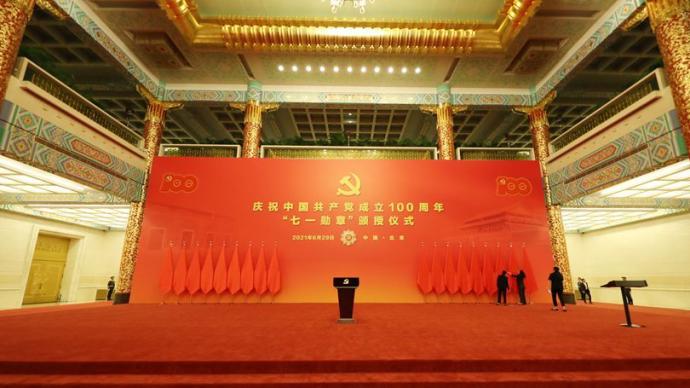弘扬功勋模范精神,奋进伟大复兴征程。庆祝中国共产党成立100周年“七一勋章”颁授仪式6月29日上午在北京人民大会堂金色大厅隆重举行。中共中央总书记、国家主席、中央军委主席习近平向“七一勋章”获得者颁授勋章并发表重要讲话。习近平强调,一百年来,一代又一代中国共产党人,为赢得民族独立和人民解放、实现国家富强和人民幸福,前仆后继、浴血奋战,艰苦奋斗、无私奉献,谱写了气吞山河的英雄壮歌。在庆祝中国共产党成立一百周年之际,我们在这里隆重举行仪式,将党内最高荣誉授予为党和人民作出杰出贡献的共产党员。习近平指出,“七一勋章”获得者都来自人民、植根人民,是立足本职、默默奉献的平凡英雄。他们的事迹可学可做,他们的精神可追可及。他们用行动证明,只要坚定理想信念、坚定奋斗意志、坚定恒心韧劲,平常时候看得出来、关键时刻站得出来、危难关头豁得出来,每名党员都能够在民族复兴的伟业中为党和人民建功立业。中共中央政治局常委李克强、栗战书、汪洋、赵乐际、韩正,国家副主席王岐山出席颁授仪式。中共中央政治局常委王沪宁主持。8时45分,“七一勋章”获得者集体乘坐礼宾车从住地出发,由国宾护卫队护卫前往人民大会堂。人民大会堂东门外,高擎红旗的礼兵分列道路两侧,18名礼兵在台阶上持枪伫立,青少年热情欢呼致意。“七一勋章”获得者沿着红毯拾级而上,进入人民大会堂东门。党和国家功勋荣誉表彰工作委员会有关领导同志等,在这里集体迎接他们到来。人民大会堂三楼金色大厅,气氛热烈庄重。巨幅红色背景板上,“七一勋章”图案熠熠生辉。背景板前,18面鲜艳的红旗分列两侧,18名英姿挺拔的解放军仪仗队礼兵在授勋台两侧持枪伫立。9时58分,伴着欢快的乐曲,习近平同“七一勋章”获得者一同步入会场,全场起立,热烈鼓掌。10时整,解放军军乐团号手吹响仪式号角,颁授仪式开始。随后,《义勇军进行曲》奏响,全场高唱中华人民共和国国歌。王沪宁宣读《中共中央关于授予“七一勋章”的决定》。决定指出,为了隆重表彰在中国革命、建设、改革各个历史时期,为党和人民事业一辈子孜孜以求、默默奉献,贡献突出、品德高尚的功勋模范党员,激励全党坚守初心使命、忠诚干净担当,党中央决定,授予马毛姐等29位同志“七一勋章”。2名旗手高擎党旗,1名礼兵手捧“七一勋章”,迈着雄健的步伐,行进到仪式现场。在雄壮的《忠诚赞歌》乐曲声中,习近平为“七一勋章”获得者颁授勋章,并同他们亲切握手、表示祝贺,全场响起一阵阵热烈的掌声。少先队员向勋章获得者献上美丽的鲜花,敬礼致意。在全场热烈的掌声中,习近平发表重要讲话,他首先代表党中央向“七一勋章”获得者表示热烈的祝贺、致以崇高的敬意。习近平指出,今天受到表彰的“七一勋章”获得者,就是各条战线党员中的杰出代表。在他们身上,生动体现了中国共产党人坚定信念、践行宗旨、拼搏奉献、廉洁奉公的高尚品质和崇高精神。习近平强调,坚定信念,就是坚持不忘初心、不移其志,以坚忍执着的理想信念,以对党和人民的赤胆忠心,把对党和人民的忠诚和热爱牢记在心目中、落实在行动上,为党和人民事业奉献自己的一切乃至宝贵生命,为党的理想信念顽强奋斗、不懈奋斗。全党同志都要把对马克思主义的信仰、对中国特色社会主义的信念作为毕生追求,永远信党爱党为党,在各自岗位上顽强拼搏,不断把为崇高理想奋斗的实践推向前进。习近平指出,践行宗旨,就是对人民饱含深情,心中装着人民,工作为了人民,想群众之所想,急群众之所急,解群众之所难,密切联系群众,坚定依靠群众,一心一意为百姓造福,以为民造福的实际行动诠释了共产党人“我将无我、不负人民”的崇高情怀。全党同志都要坚持人民立场、人民至上,坚持不懈为群众办实事做好事,始终保持同人民群众的血肉联系。习近平强调,拼搏奉献,就是把许党报国、履职尽责作为人生目标,不畏艰险、敢于牺牲,苦干实干、不屈不挠,充分展示了共产党人无私无畏的奉献精神和坚忍不拔的斗争精神。全党同志都要保持“越是艰险越向前”的英雄气概,保持“敢教日月换新天”的昂扬斗志,埋头苦干、攻坚克难,努力创造无愧于党、无愧于人民、无愧于时代的业绩。习近平指出,廉洁奉公,就是保持共产党人艰苦朴素、公而忘私的光荣传统,从不以功臣自居,不计较个人得失,不贪图享受,守纪律、讲规矩,生动体现了共产党人应有的道德风范。全党同志都要明大德、守公德、严私德,清清白白做人、干干净净做事,做到克己奉公、以俭修身,永葆清正廉洁的政治本色。习近平强调,新时代是需要英雄并一定能够产生英雄的时代。中国共产党要始终成为时代先锋、民族脊梁,党员队伍必须过硬。希望受到表彰的同志珍惜荣誉、发扬成绩,争取更大光荣。各级党组织要从工作和生活上关心爱护功勋党员,大力宣传“七一勋章”获得者的感人事迹和崇高品德,在全党全社会形成崇尚先进、见贤思齐的浓厚氛围,激励广大党员、干部牢记党的性质宗旨,牢记党的初心使命,不懈奋斗,永远奋斗,在全面建设社会主义现代化国家新征程上,向着第二个百年奋斗目标、向着中华民族伟大复兴的中国梦奋勇前进。仪式上,云南省丽江华坪女子高级中学党支部书记、校长张桂梅代表