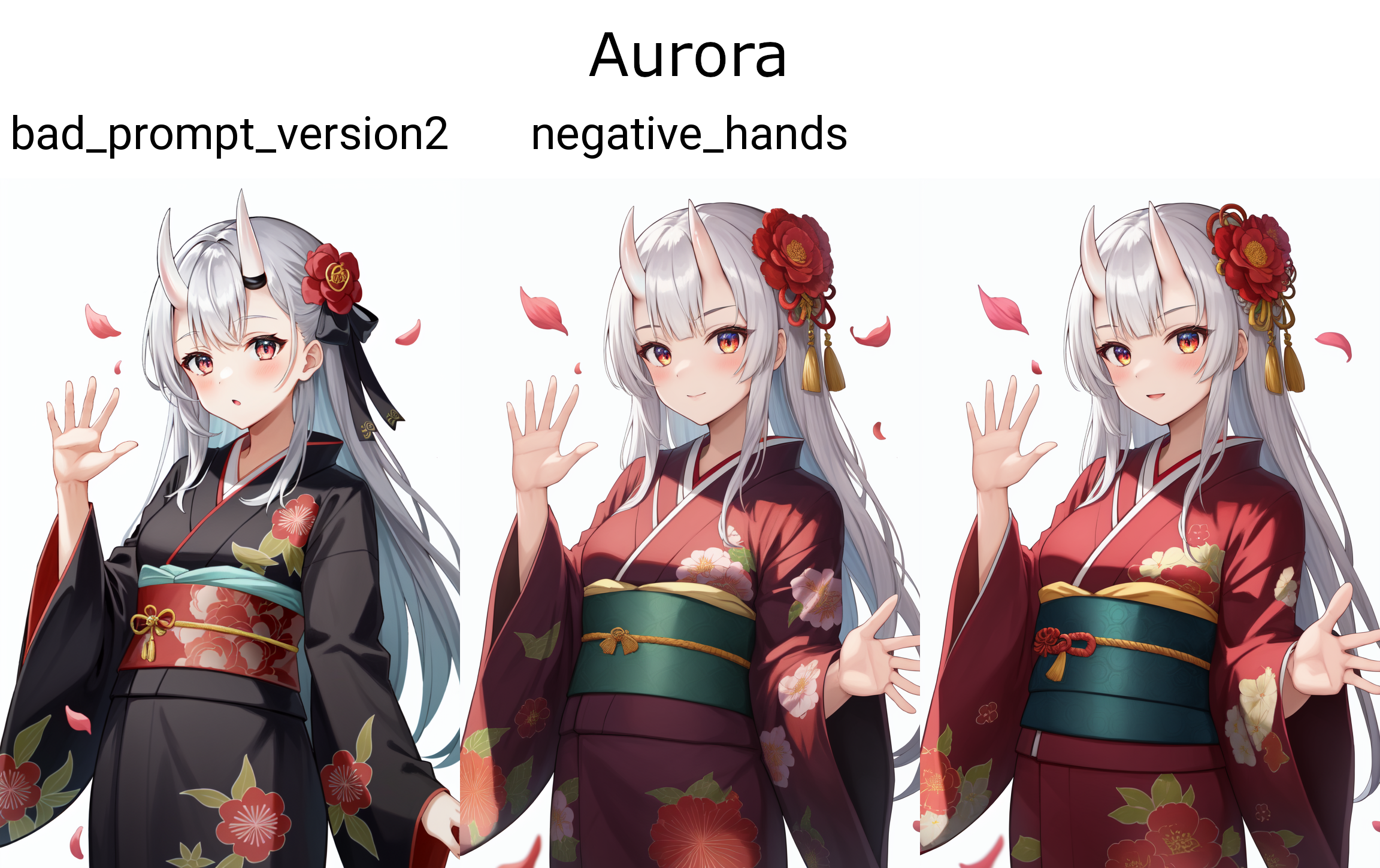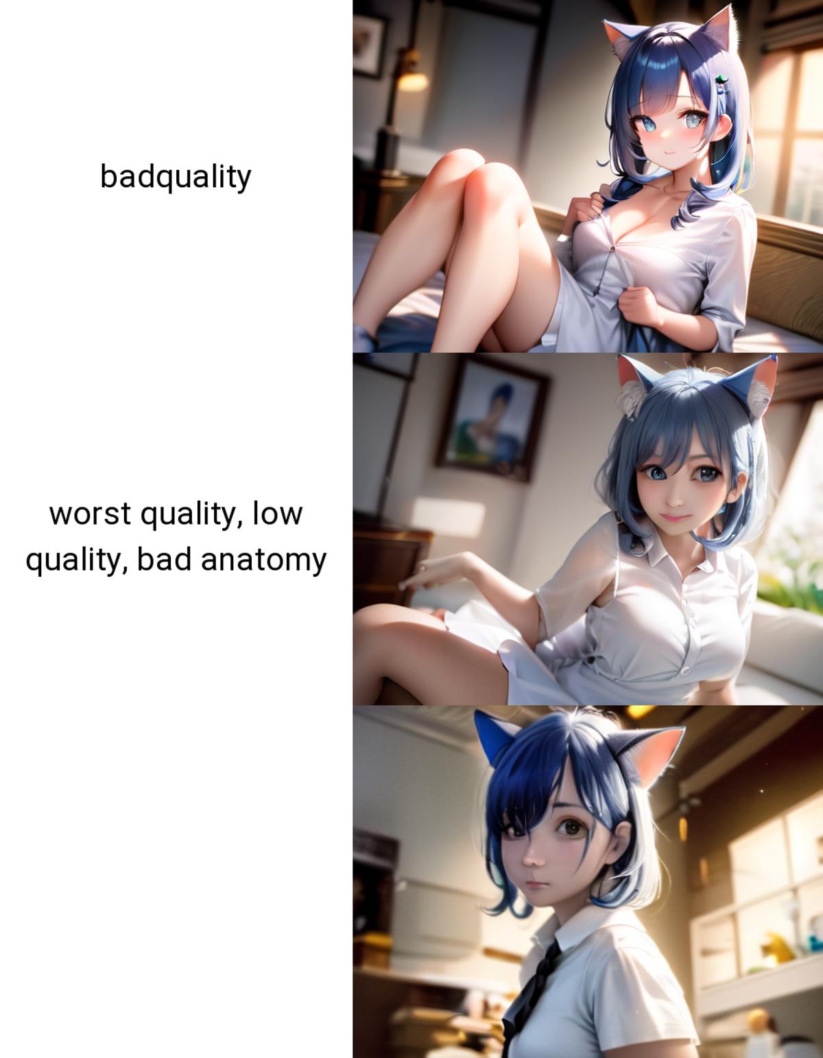 veryBadImageNegative_v1.3使用了新的训练图集,在AOM3和viewer-mix_v1.7中使用时表现较好。