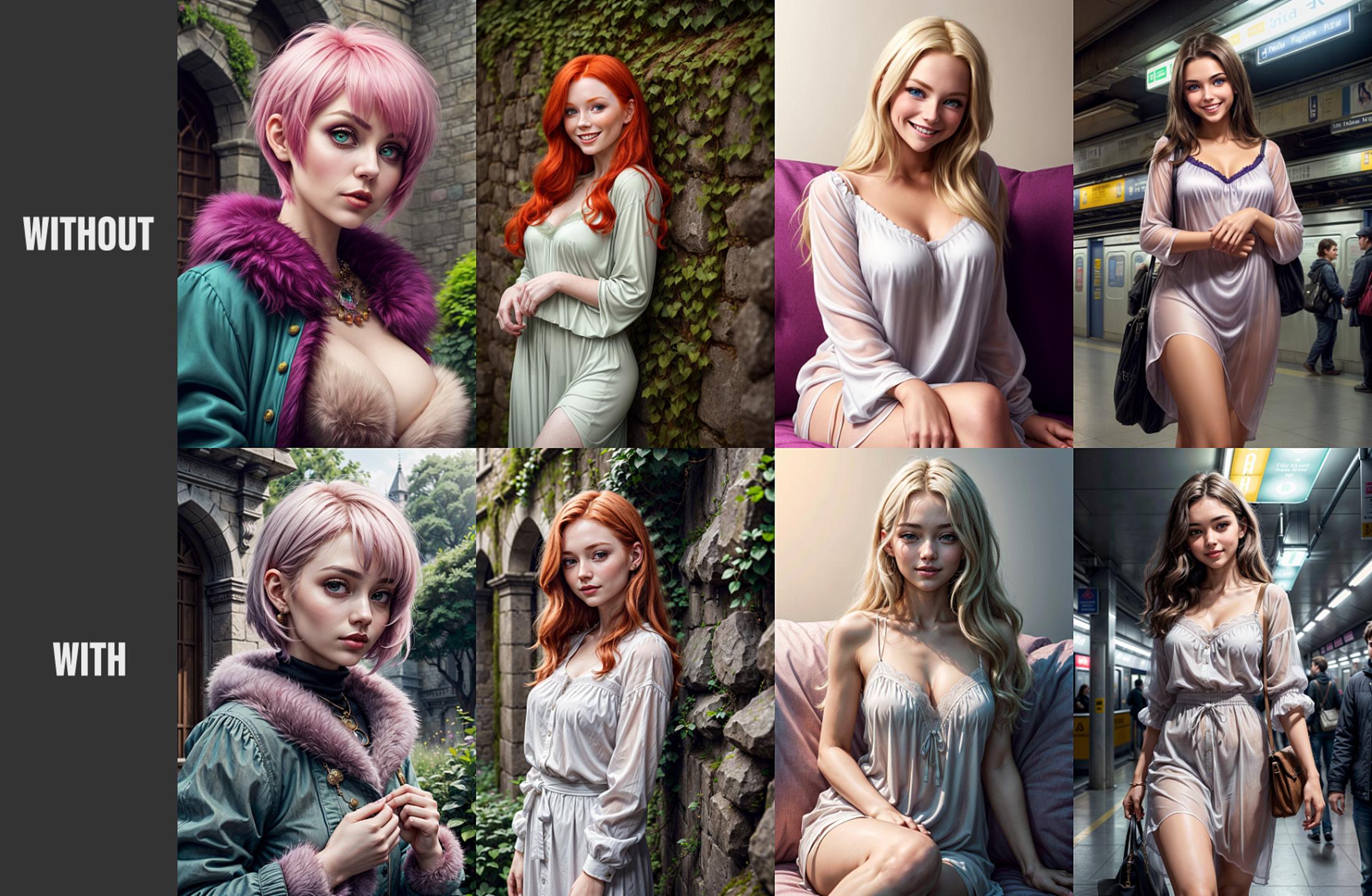 Works best for CG\Comic, The class of real photos is prone to NSFW pictures, but most likely only on SD 1.5. Other versions have not been tested, No bias in terms of eyes and face and also not mimicking an individual person,But it affects the size of the breasts as well as the shape of the cloths and hair. So this is the first beta version, comments welcome!