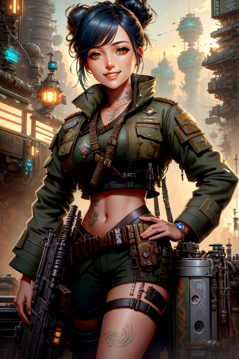 This is a textual inversion that I made inspired by The Last of Us, created with Dream Artist on a single image that I generated. I was trying to do a post-apocalyptic feel. It adds a lot of gadgets, rusted buildings, tech gear, does some really fun tattoos, etc to generations. It is a powerful TI, so play with weights or even try to use the negative embedded! :)