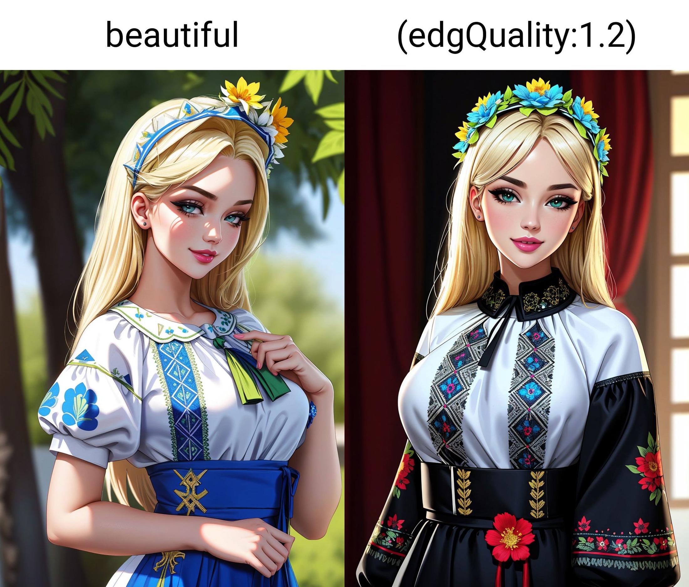 (under-boo:1.2) increases the weight, or values below 1 to decrease (such as 0.6-0.8), Too high a weight will affect the overall clothing and hair performance