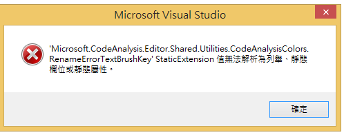 200,5282866355.0,IssuesEvent,2017-02-07 19:55:34,dotnet/roslyn,https://api.github.com/repos/dotnet/roslyn,closed,VS 2017 RC3 crashes somewhere in Microsoft.CodeAnalysis.Workspaces.dll,Area-Analyzers Bug Pending Shiproom Approval Tenet-Reliability,"``` Microsoft.CodeAnalysis.Workspaces.dll!Microsoft.CodeAnalysis.ErrorReporting.FatalError.Report(System.Exception exception, System.Action handler) Unknown