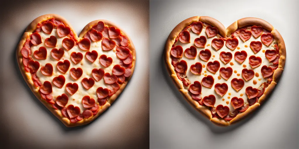 pepperoni pizza in the shape of a heart, hyperrealistic award-winning professional food photography (cfg = 13, seed = 75789081)